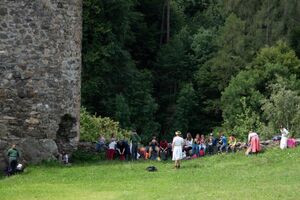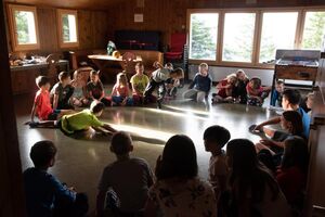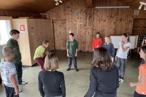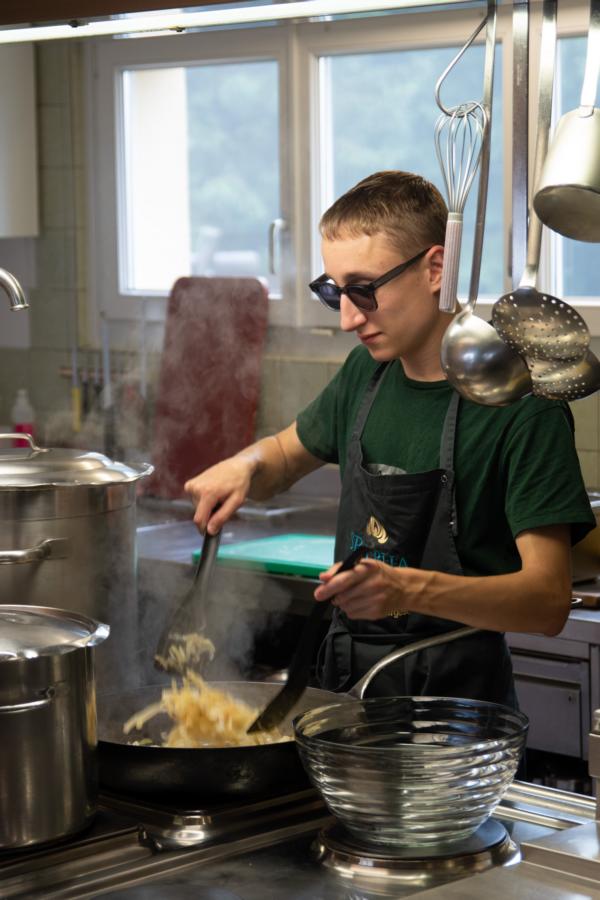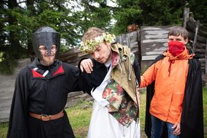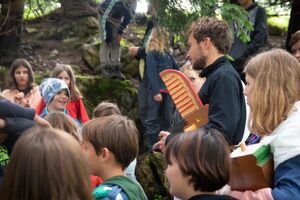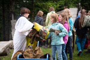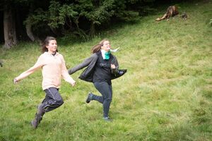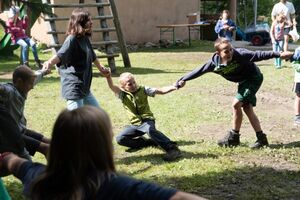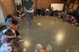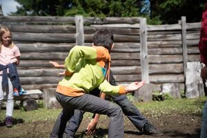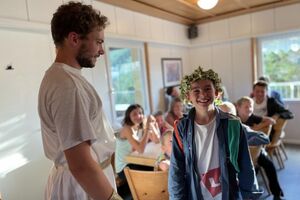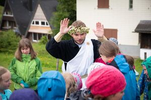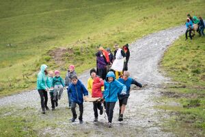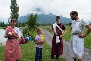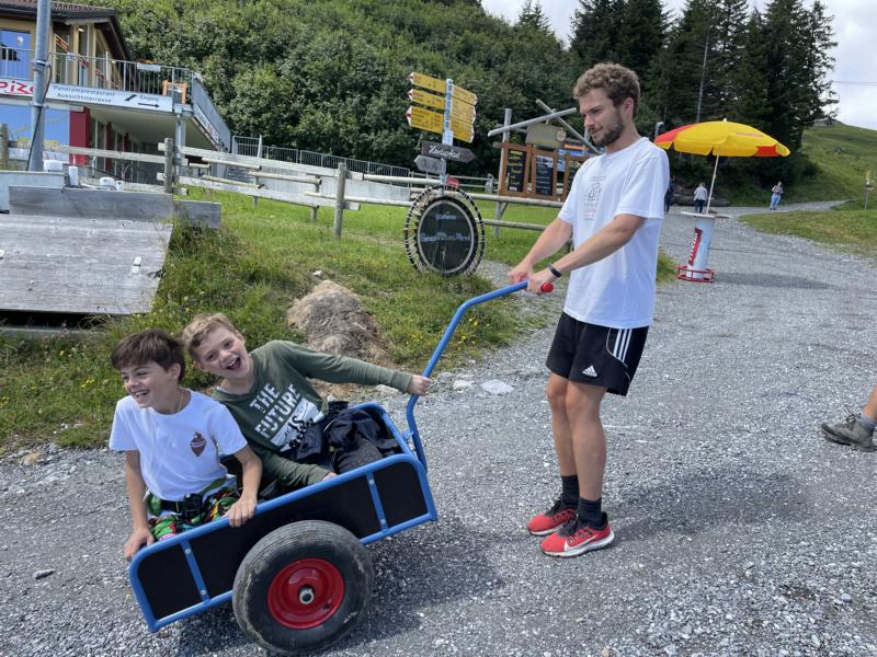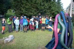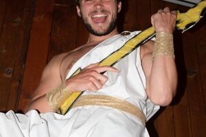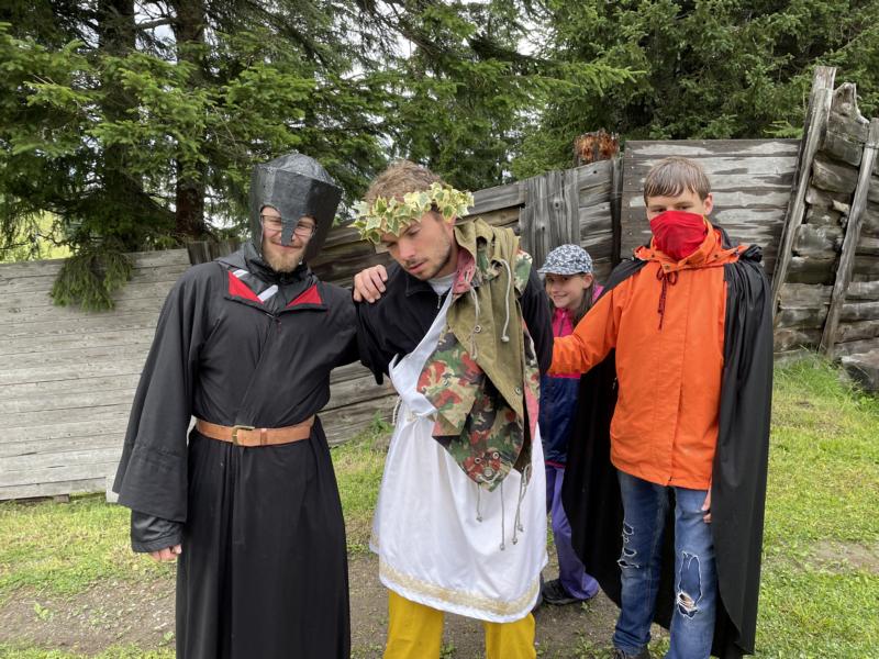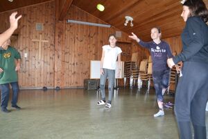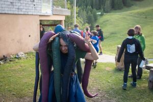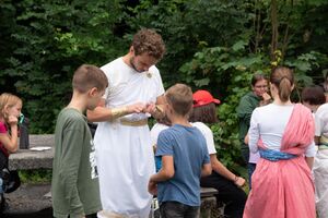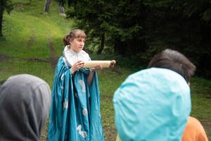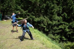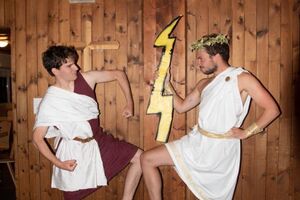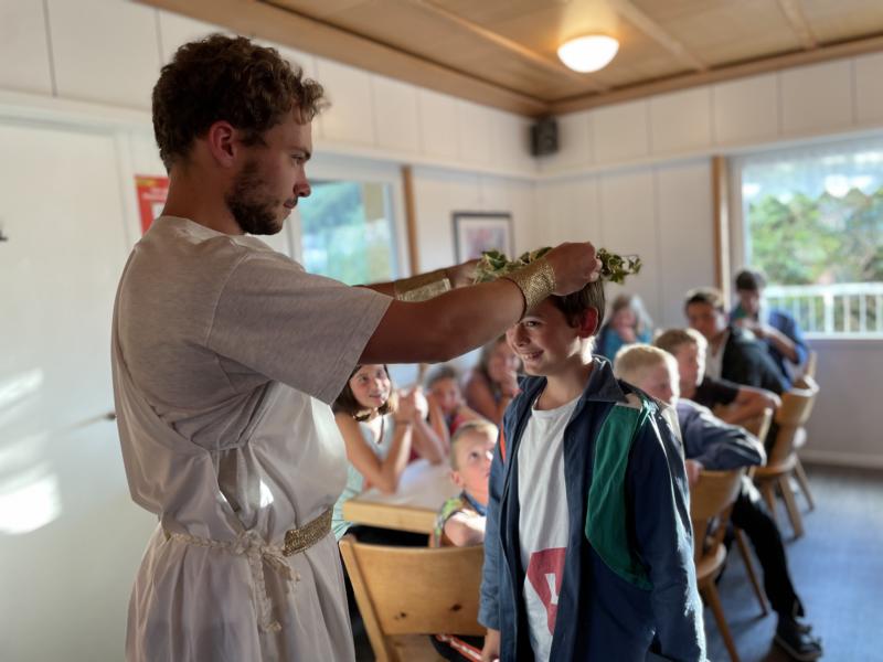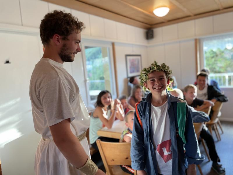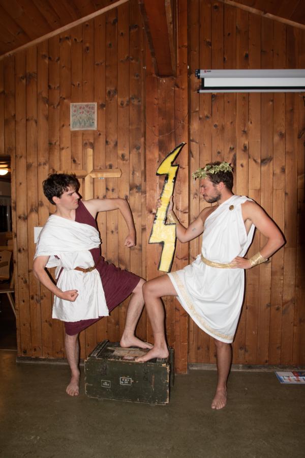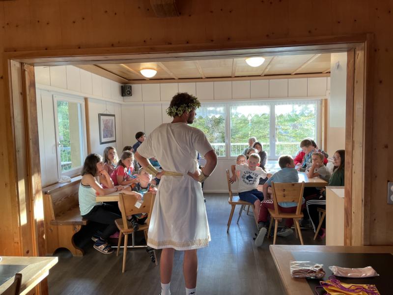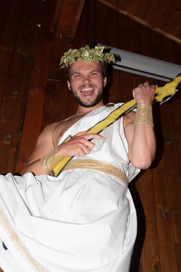 Nach einem rhythmisch und musikalisch forderndem Morgensport ging es bei uns direkt mit Olympischen Zweikampfspielen los. Bei Güggelikampf, Sackhüpfen, Dart Werfen und vielem mehr konnten die Teilnehmenden Stärke und Geschick beweisen. Am Nachmittag mussten wir jedoch wieder unserem dringensten Problem nachgehen. Zeus ist noch immer in der Unterwelt gefangen. Also bauten wir für den Fährmann Charon ein Floss und machten uns im Dunklen der Nacht auf den Weg in Hades' Reich. Mit der Hilfe von Athene handelten wir dann einen Deal mit ihm aus: In einem Wagenrennen werden wir gegen Hades um das Schicksal von Zeus und uns allen antreten.