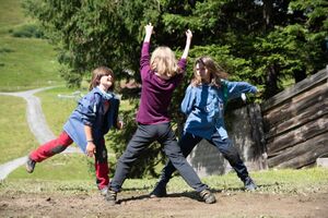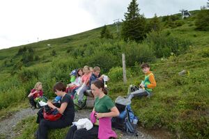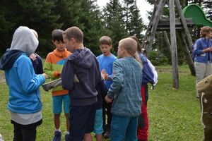 Heute wanderten wir in 3 Gruppen nach Marathon, um die Blitzteile zu suchen. Eine Gruppe suchte auf dem Heidipfad und erlebte diesen gleichzeitig in vollen Zügen inklusive Baden in der Kneipanlage. Die zweite Gruppe wanderte zum Vilterserseeli und wurde dort fündig. Zu guter letzt suchte die dritte Gruppe beim Wangsersee. Vier ganz mutige waren sogar baden und wurden mit einem Blitz-Stück belohnt. So können wir uns morgen in die Unterwelt begeben um Zeus zu befreien!