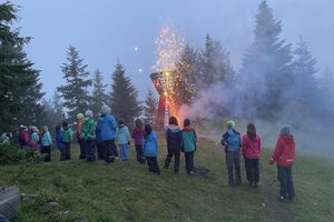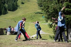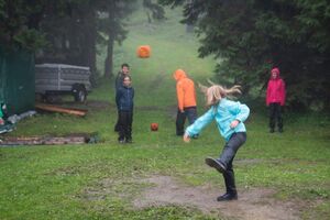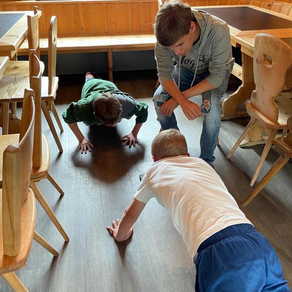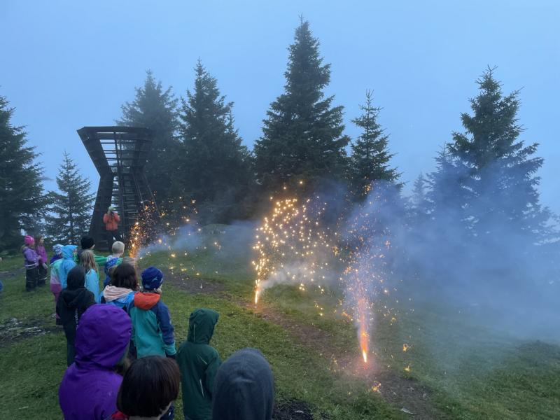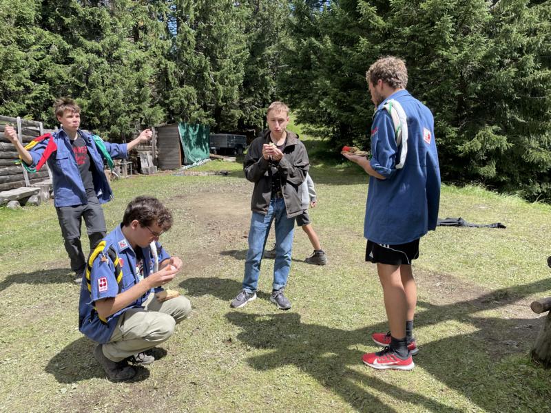 Heute Morgen haben wir uns dem Ballsport als erste Olympische Disziplin gewidmet. Im Haus und ums Haus spielten wir fair und mega motiviert verschiedenste Spiele mit Pingpong- Volley- und Softbällen sowie Bocciakugeln. Nach einer Älpler-Magronen-Stärkung haben wir uns am Nachmittag dem OL gewidmet und dabei praktischerweise Verschiedenstes zum Thema Orientierung gelernt. Am Abend haben wir ein Feuer gemacht und über verschiedene Vulkane gestaunt.