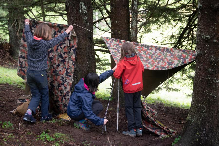 Zeus der Donnergott ist verschwunden... Endlich schönes Wetter! Doch wo ist Zeus? Das Orakel kann es uns erzählen. Damit die Händler uns das Orakel geben wollen, müssen wir für sie einen Unterschlupf bauen. Unter grossem Einsatz konnten wir 3 super Blachenhütten für sie bauen! Vom Orakel haben wir erfahren, dass Zeus von Hades entführt wurde und Medusa seinen Blitz in 3 Teile zerstört und in Marathon verteilt hat. Morgen machen wir uns in 3 Gruppen auf den Weg nach Marathon um diese zu finden! Ein weiteres Highlight: Wir hatten heute Besuch von unserem J&S Coach