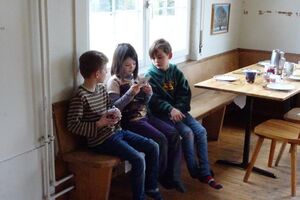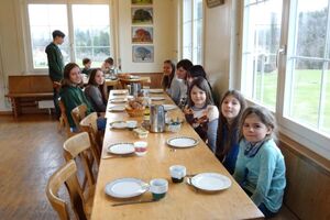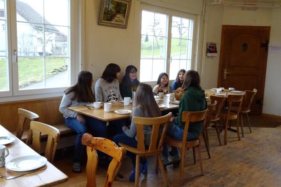 Den Sonntag starteten wir ruhig und gemächlich. Während die einen noch die Wärme im Bett genossen, waren andere schon fleissig am Spielen. Nach dem Zmorge begannen wir, das Haus zu putzen und zu packen. Gemeinsam sangen wir aus dem Cavayom, feierten eine kleine Andacht zum Thema «Glück» und hörten dabei das Gleichnis von den Arbeitern im Weinberg.