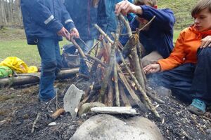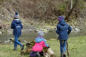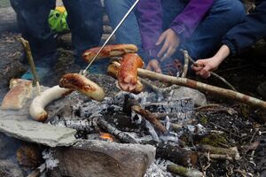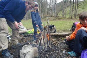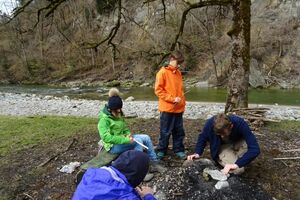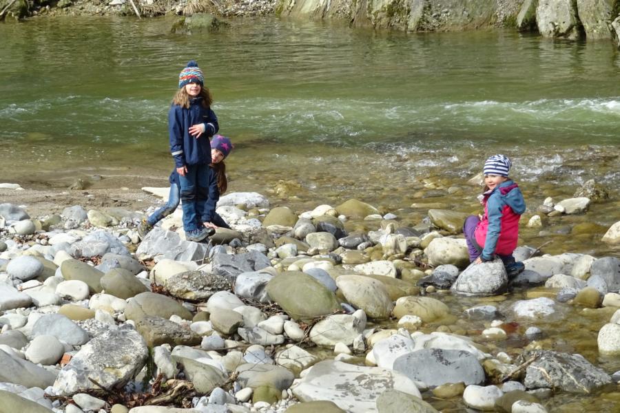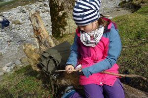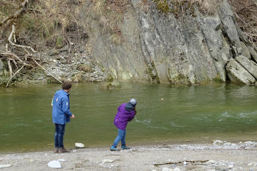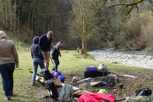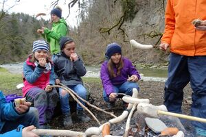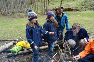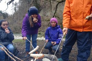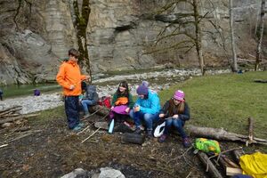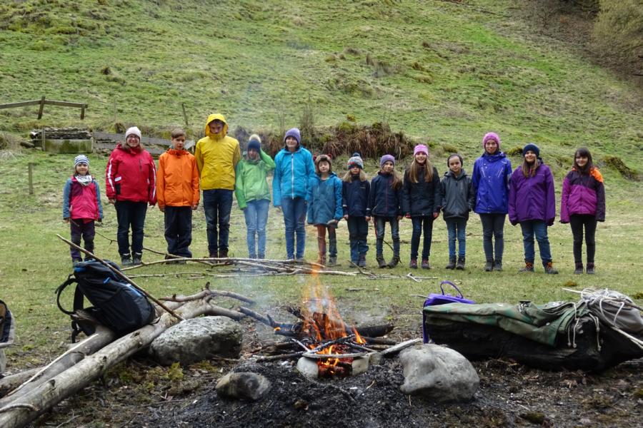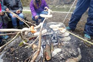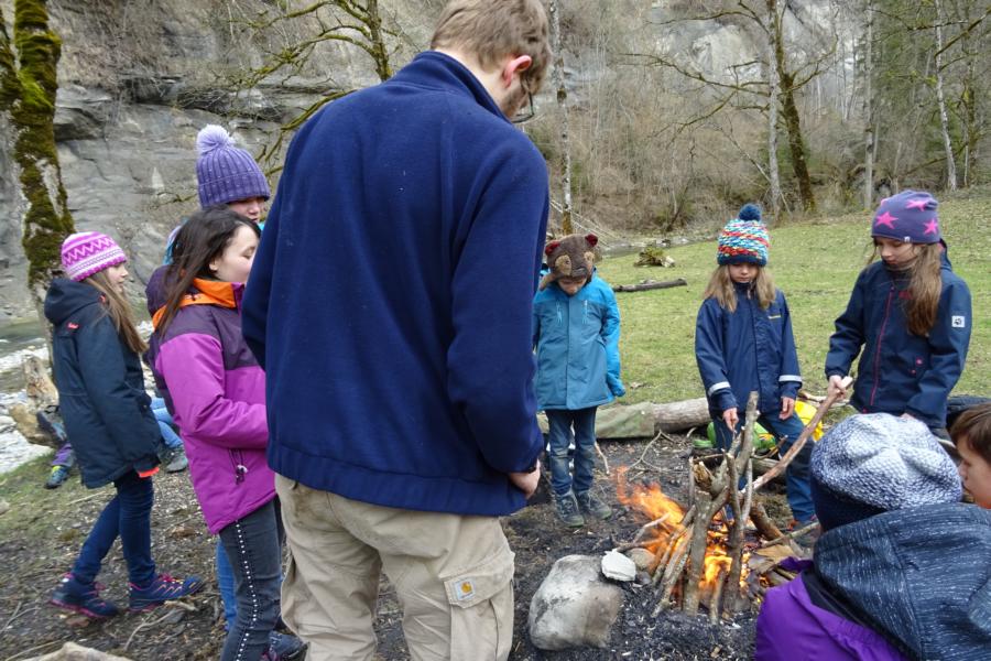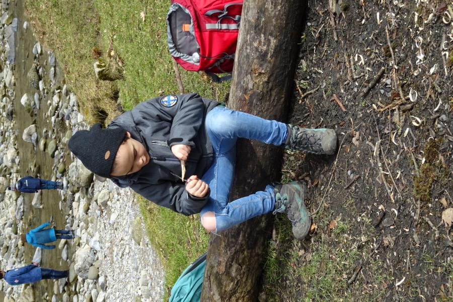 Nach einer ruhigen Nacht wurde sich bei einem reichhaltigen Zmorge auf den Tag eingestimmt. An der Sitter teilten sich die Kinder und Leitenden in verschiedene Teams auf. Einige suchten Holz fürs Feuer, andere spielten Versteckis, nochmals andere genossen und perfektionierten das Steinewerfen am Fluss. Auf dem gelungenen Feuer wurde der Zmittag in verschiedensten Varianten zubereitet.