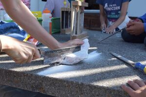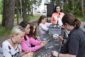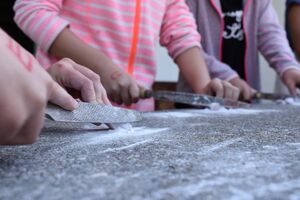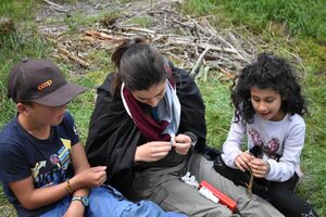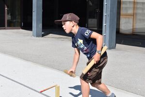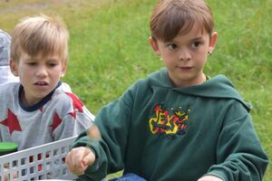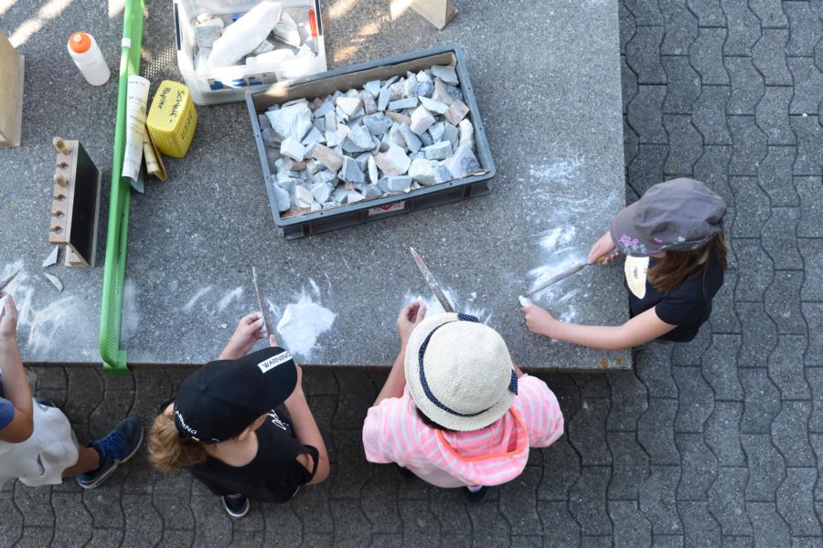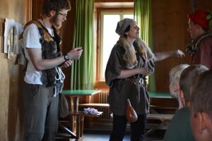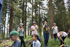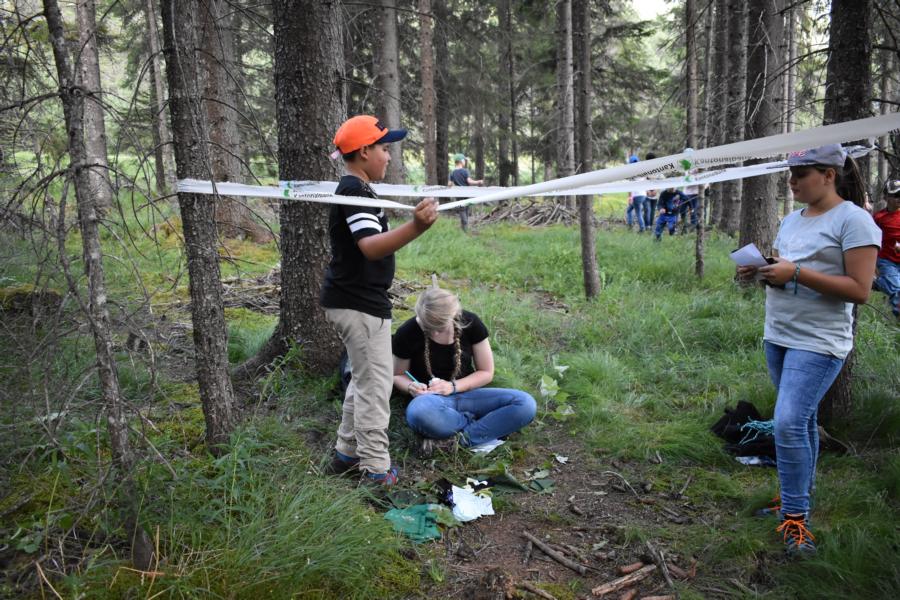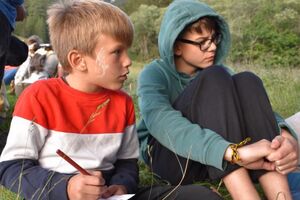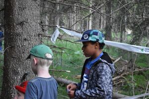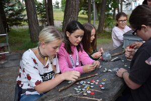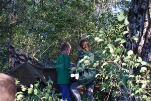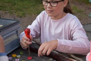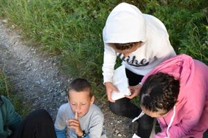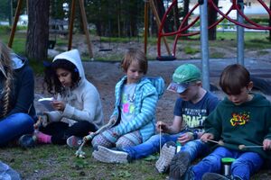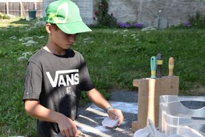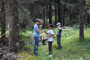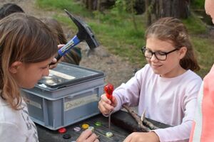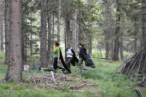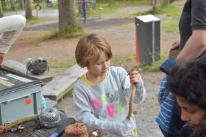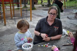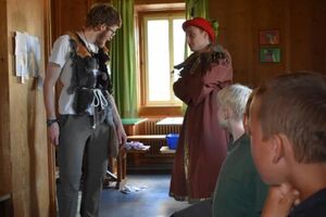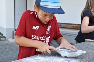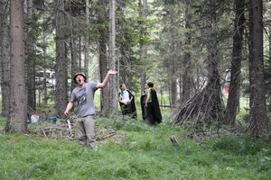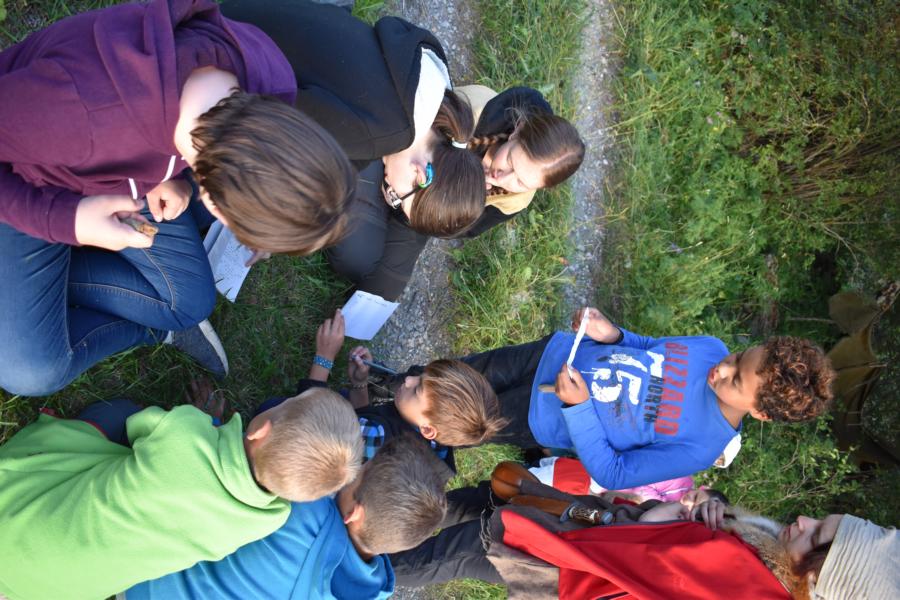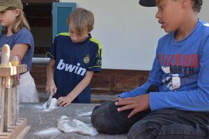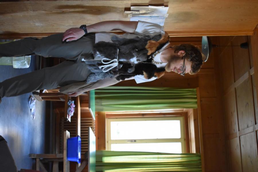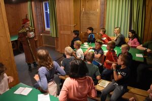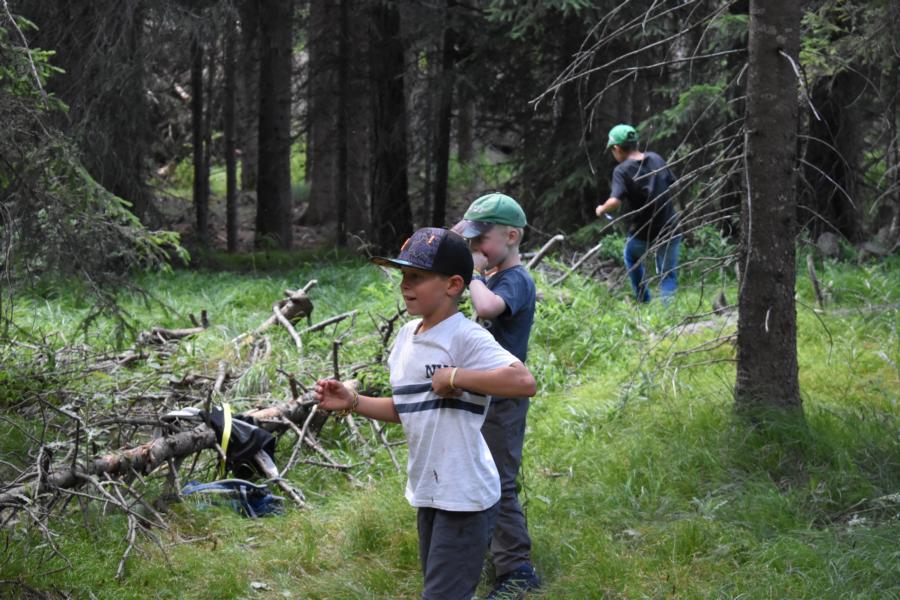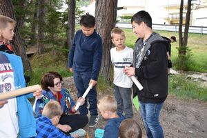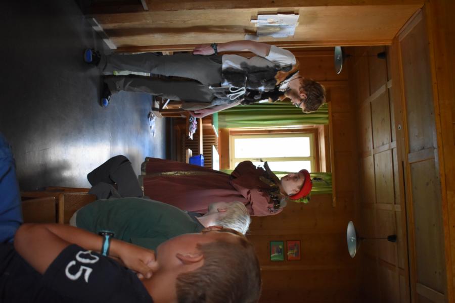 Nachdem wir gestern Abend mit Hilfe unseres Zauberwürfels in eine neue Zeit gereist waren, haben wir heute Morgen Besuch von einem Wikinger bekommen. Marco Polo war über das Ziel erst gar nicht erfreut, freundete sich dann aber damit an und entschied, einen Tag mit seiner Mannschaft zu bleiben. So lernten die Kinder heute, was es heisst, ein Wikinger zu sein. Wikingerschach, Zielwerfen, Hüpfen, Waffenfertigung aus Speckstein, Schmuckherstellung... Mit all diesem angeeigneten Können und Wissen war das Geländespiel am Nachmittag gut zu bewältigen. In ihren Ämtligruppen schmuggelten die Kinder allerlei Waren durch den Wald.