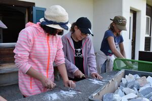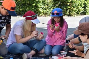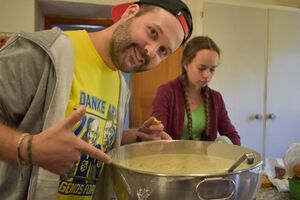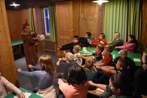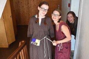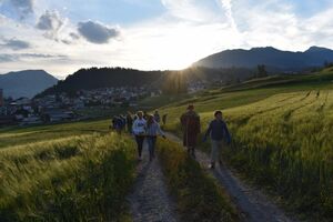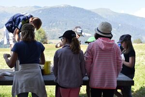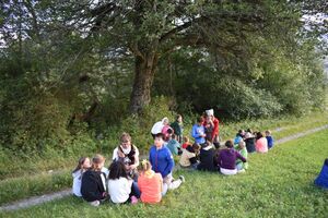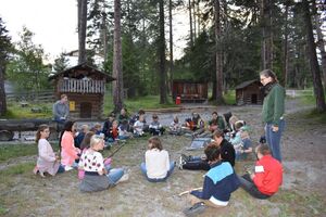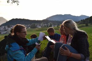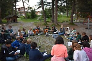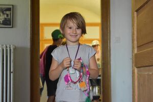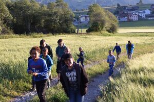 Die Reise war ein Glücksfall! Wir sind bei den Hippies gelandet! Nach einem Sonnengruss und einem Frühstück gingen die Wanderungen zurück zum Haus. Glücklicherweise hatte auch dieses den Sprung in die neue Zeit geschafft. Am Nachmittag wurde entspannt. Gesichtspeeling, Handmassage, Märliecke, Lesezimmer, Yoga. So lässt es sich leben. Im Anschluss durfte, wer mochte, nochmals auf den grossen Spielplatz. Nach dem traditionellen Fotzelschnittenznacht setzte jedes Mannschaftsmitglied sein Können dafür ein, Geld für eine gemeinsame Anschaffung zu verdienen. Ein grosser Topf mit Geld konnte gefüllt werden und damit ein feines Schlummerdessert erstanden werden.