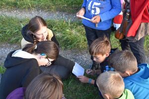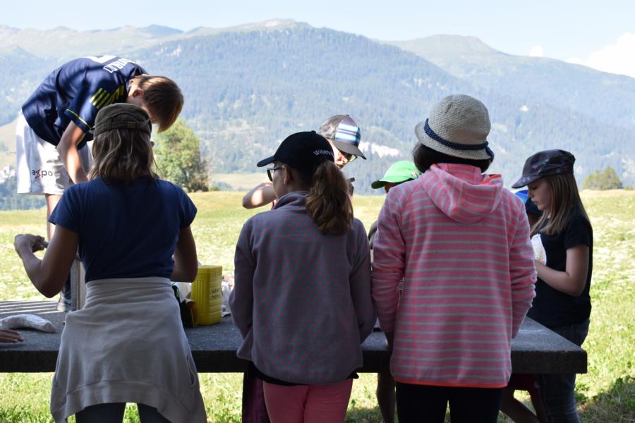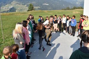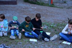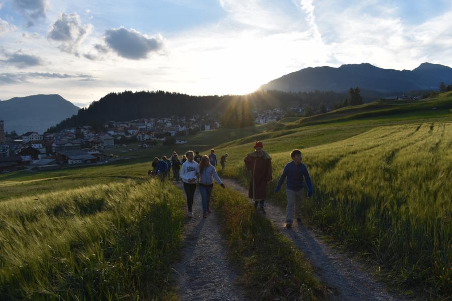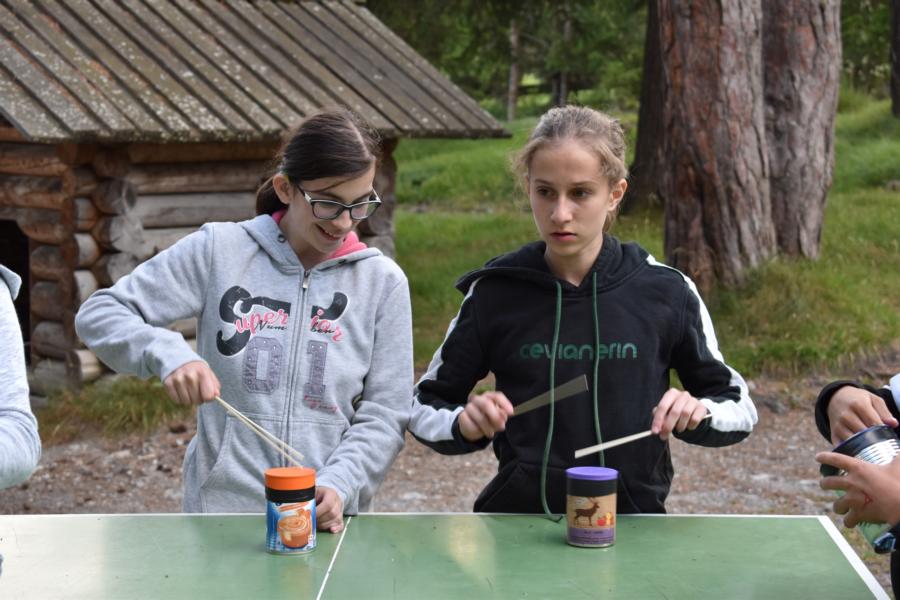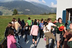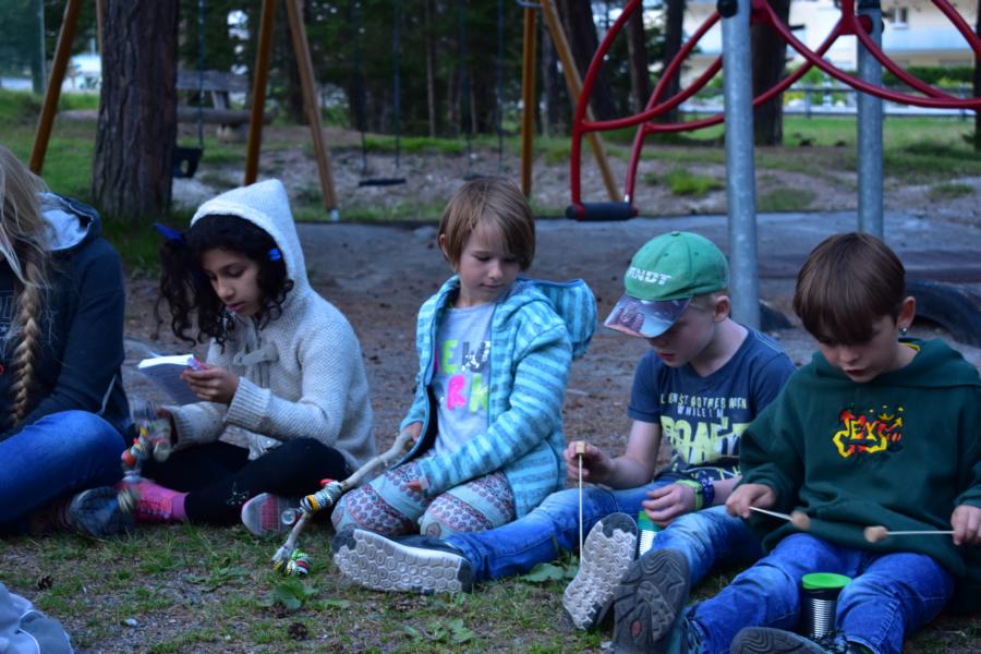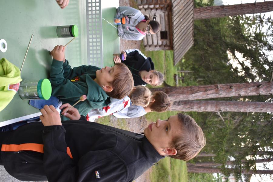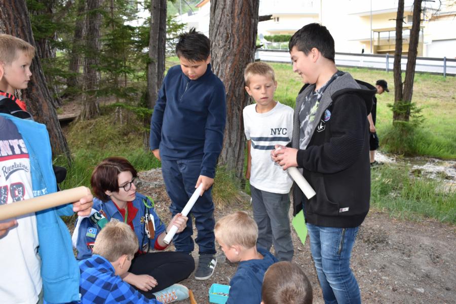 Heute trafen sich 32 mutige Jungmatrosen am Bahnhof St. Gallen, wo sie von Marco Polo in Empfang genommen wurden. Gemeinsam machten sie sich auf die Reise nach Lantsch. Nach dem Beziehen der Zimmer hiess es Völk und Fussball auf dem Schulhausplatz. Danach lernten die Matrosen das Dorf Lantsch in Form eines ÖL besser kennen. Eine Portion stärkende Spaghetti später, startete eine Expedition zum grossen Spielplatz, wo Instrumente gebaut wurden.
