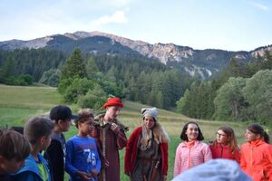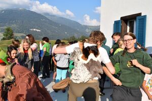 Heute Morgen sind wir in Schottland aufgewacht. Während eines Spiels im Wald haben die Kinder den Schotten geholfen, ihre Unabhängigkeit zu bewahren. Mega fanden wir, dass die Kinder im Lauf des Spiels gemerkt haben, dass sie noch erfolgreicher sind, wenn die Gruppen sich zusammenschliessen. So gefällt es uns :) Aufgrund einer gewonnenen Wette haben sie dann den zweiten Würfel bekommen. Mega. Jetzt können wir nämlich jederzeit das Ziel unserer Reise bestimmen. So ging’s nach dem Mittag nach Venedig, wo Marco Polo uns zu einem Maskenball einlud. Jede Ämtligruppe bereitete für den kommenden Abend etwas vor. Es wurde gesummt, wir durften Sketche geniessen, witzigen Spielen beiwohnen, ein Lagerquiz im 1,2 oder 3-Stil mitmachen und schlussendlich dann auch noch tanzen. Die Leiter verkuppelten die Kinder zu Pärchen, die Kinder die Leiter. So ging unser letzter Abend im Haus zu Ende. Mittlerweile haben auch die letzten Nachteulen ihr Quartier bezogen oder schleichen noch mit Filzstiften bewaffnet durch die Gänge.