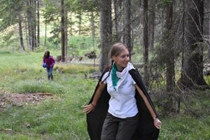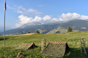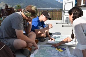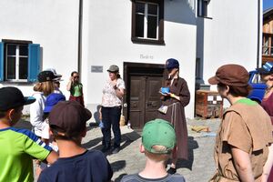 Heute war was los? Wo fange ich an? Am besten am Morgen... als wir ins Erdgeschoss unseres Hauses kamen, wunderten wir uns. War da doch tatsächlich ein Absperrband quer über Terrasse, Esssaal und Gang gespannt. Wo unser Haus sich aktuell befindet, konnten wir auch nicht mit Sicherheit eruieren. Marco Polo vermutete, dass wir irgendwo in Zentralasien gelandet seien und versprach, der Sache nachzugehen. Tatsächlich fand er eine Person, die Licht ins Dunkel bringen konnte. Allerdings anders, als wir es uns erhofft hatten. Die wütende Grenzwächterin schimpfte erst auf Chinesisch, dann auf Französisch... sie drohte, uns ins Gefängnis zu werfen, wenn wir nicht mitsamt unserem Haus verschwinden würden. Wir waren genau auf der Grenze zwischen China und der Mongolei gelandet. Seeeehr unvorteilhaft... Das Haus kann leider nur nachts reisen. Somit teilten sich Kinder und Leiter in drei Gruppen auf und verliessen das Haus mit kleinem Gepäck fluchtartig. Sie wanderten sie stundenlang. So weit, bis sie sich sicher fühlten. Bestiegen dabei Berge, trafen auf Burgen, Brücken, Täler und allerlei Flora und Fauna. Nun haben sie an ihren Zielen ihre Zelte aufgeschlagen, unser Weiterreiseritual gemacht und hoffen, morgen in einem anderen Land aufzuwachen und das Haus wieder zu finden. Drückt uns die Daumen!