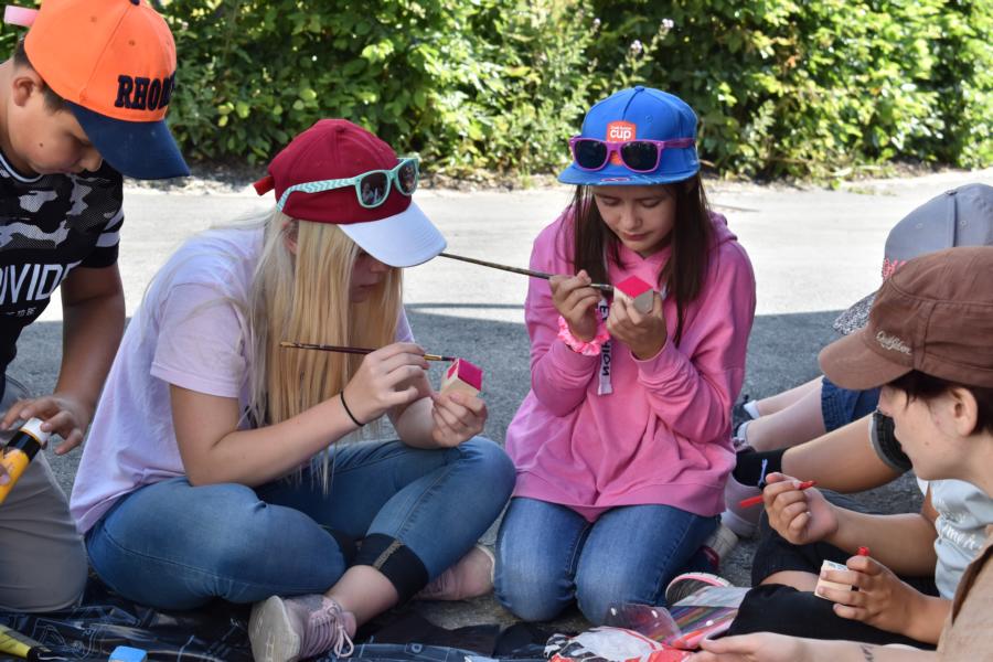 Danach war Zeit für Entspannung. Nach einer Traumreise konnten wir zwischen den Posten: Lesen, Zeichnen, Ausmalen, Ruheraum, Spielen und Handpeeling (auch bekannt als „Babyhänd“) hin und her wechseln, wie es uns gefiel.